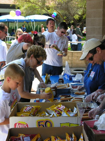 We offer everyone a real healthy, well-balanced meal of hot dogs, chips, and sodas.....